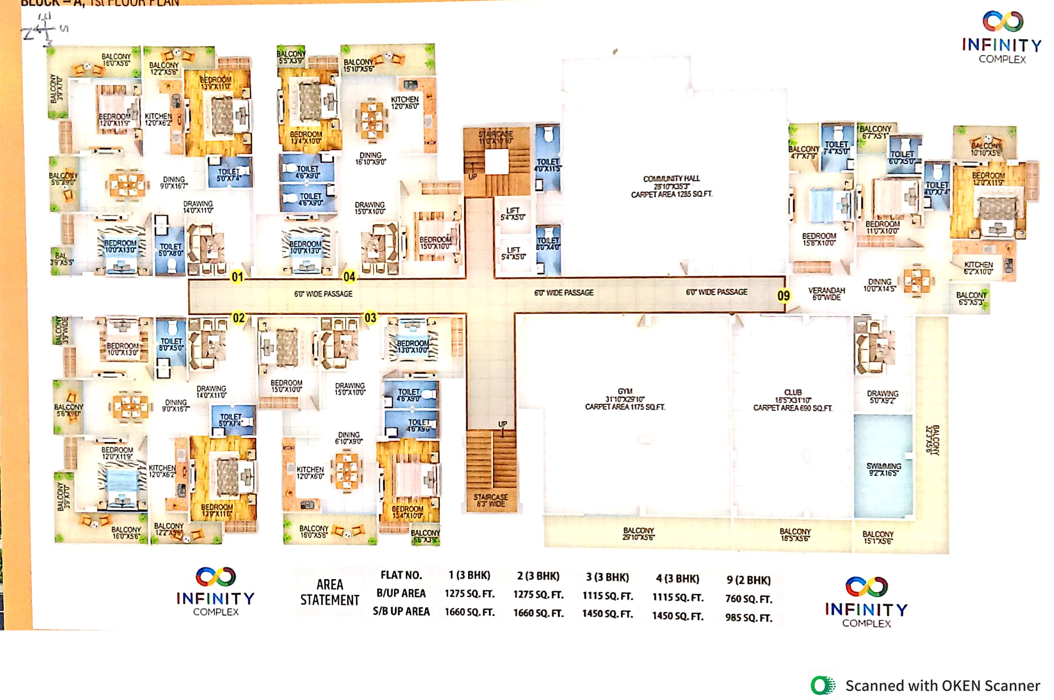 Designer Vitrified Flooring of ISI mark of size 2'x4' in all Rooms.