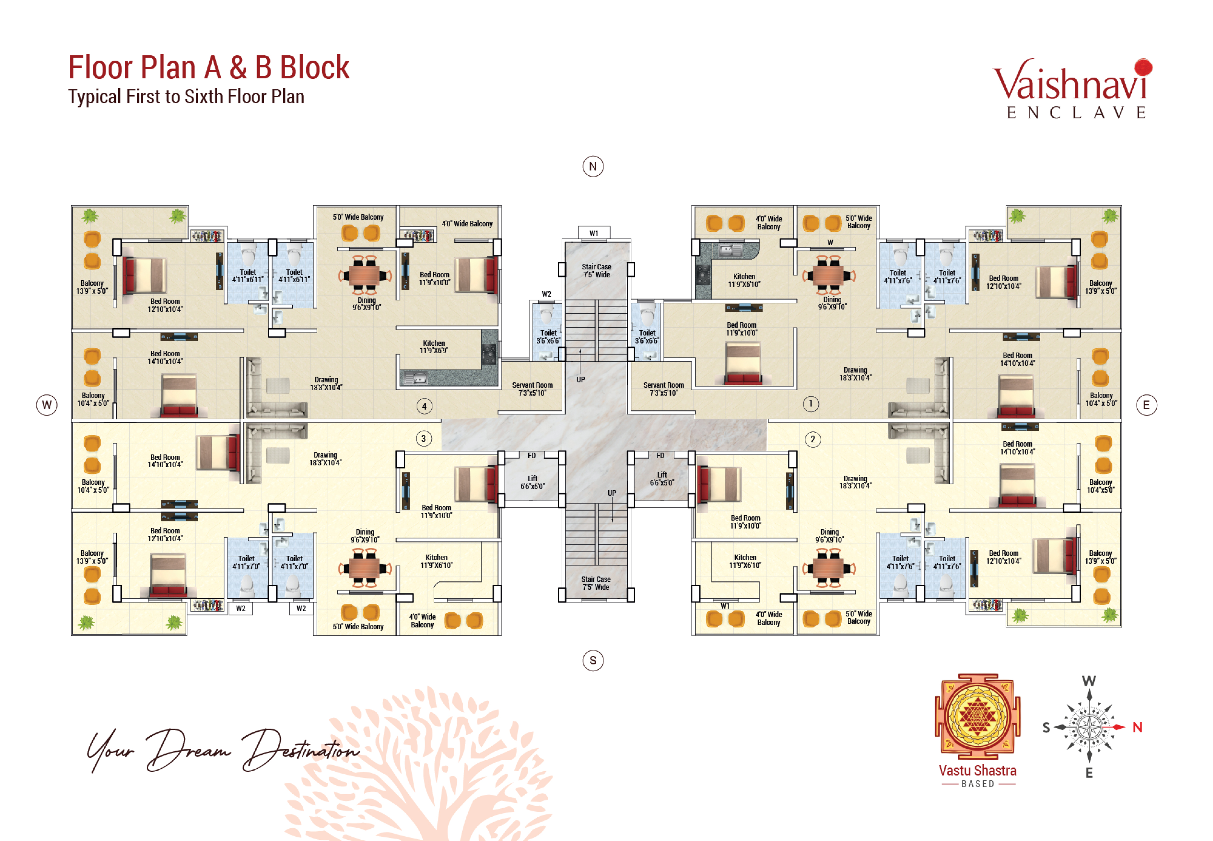 | 04 | 3 BHK + 3 Toilet + Servant Room | 1050 S.F. | 88 S.F. | 1190 S.F. | 1606 S.F. |